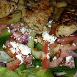 Broiled Shrimp, 1 stuffed clam, crab meat, Filet of Sole, Salmon, and Grilled Calamari. Served with soup or salad, potatoes and veggies.